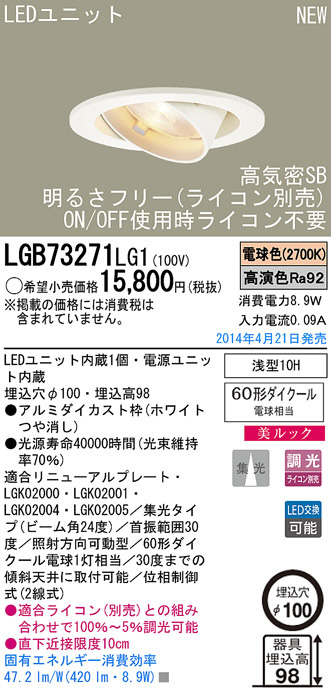Panasonic LED¥À¥¦¥ó¥é¥¤¥È LGB73271LG1