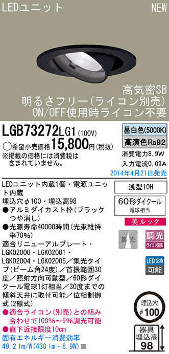 Panasonic LED¥À¥¦¥ó¥é¥¤¥È LGB73272LG1