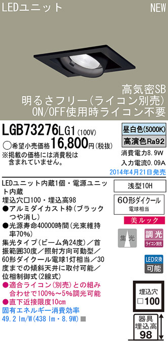 Panasonic LED¥À¥¦¥ó¥é¥¤¥È LGB73276LG1