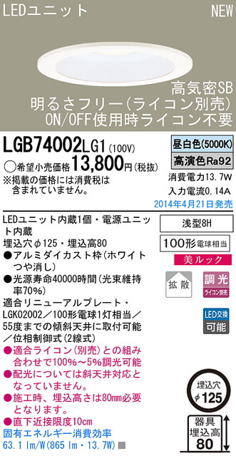 Panasonic LED¥À¥¦¥ó¥é¥¤¥È LGB74002LG1