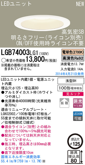 Panasonic LED¥À¥¦¥ó¥é¥¤¥È LGB74003LG1