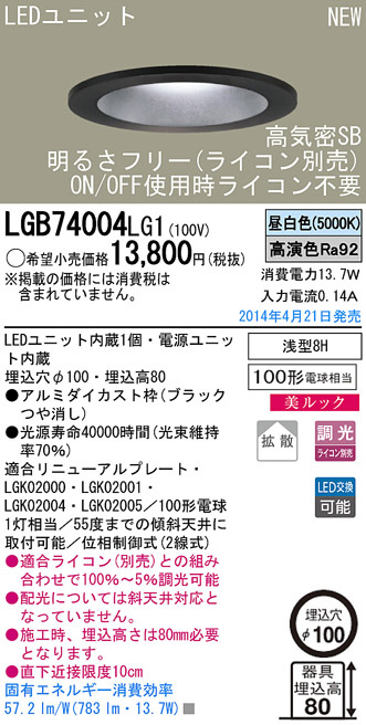 Panasonic LED¥À¥¦¥ó¥é¥¤¥È LGB74004LG1