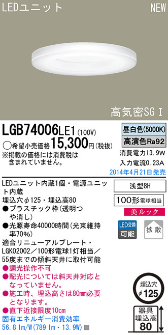 Panasonic LED¥À¥¦¥ó¥é¥¤¥È LGB74006LE1