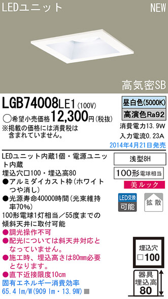 Panasonic LED¥À¥¦¥ó¥é¥¤¥È LGB74008LE1