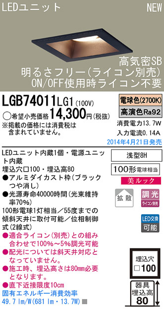 Panasonic LED¥À¥¦¥ó¥é¥¤¥È LGB74011LG1
