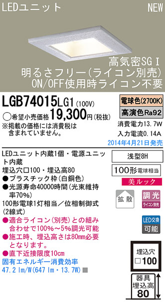 Panasonic LED¥À¥¦¥ó¥é¥¤¥È LGB74015LG1