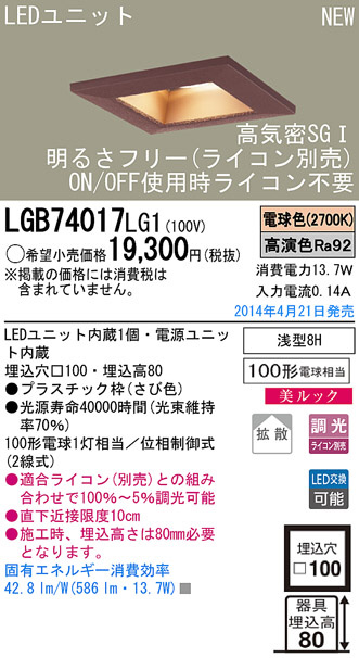 Panasonic LED¥À¥¦¥ó¥é¥¤¥È LGB74017LG1