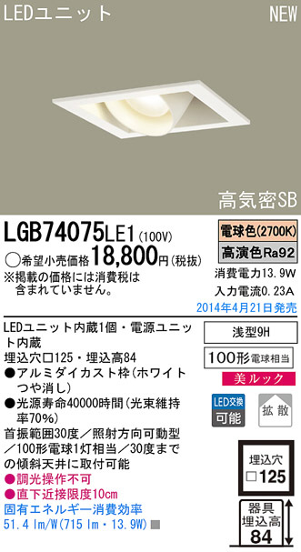 Panasonic LED¥À¥¦¥ó¥é¥¤¥È LGB74075LE1