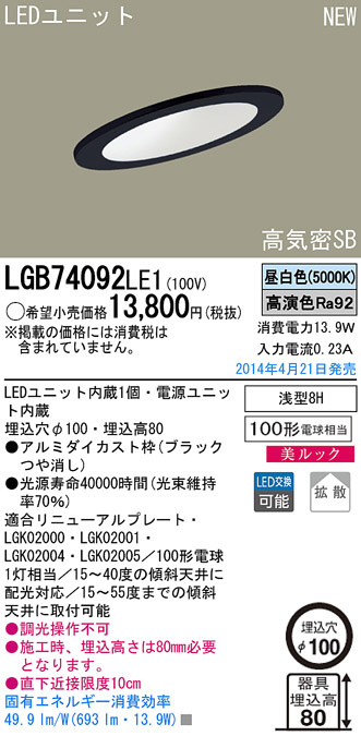 Panasonic LED¥À¥¦¥ó¥é¥¤¥È LGB74092LE1