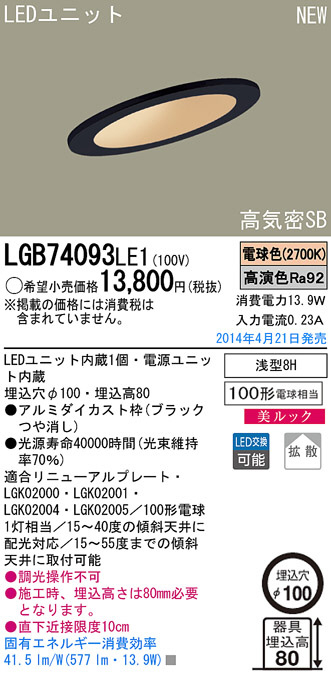 Panasonic LED¥À¥¦¥ó¥é¥¤¥È LGB74093LE1