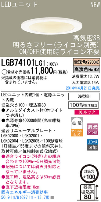 Panasonic LED¥À¥¦¥ó¥é¥¤¥È LGB74101LG1