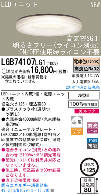 Panasonic LED¥À¥¦¥ó¥é¥¤¥È LGB74107LG1
