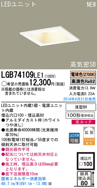 Panasonic LED¥À¥¦¥ó¥é¥¤¥È LGB74109LE1