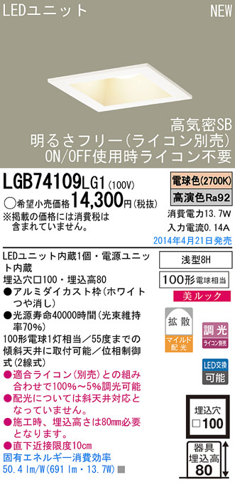 Panasonic LED¥À¥¦¥ó¥é¥¤¥È LGB74109LG1
