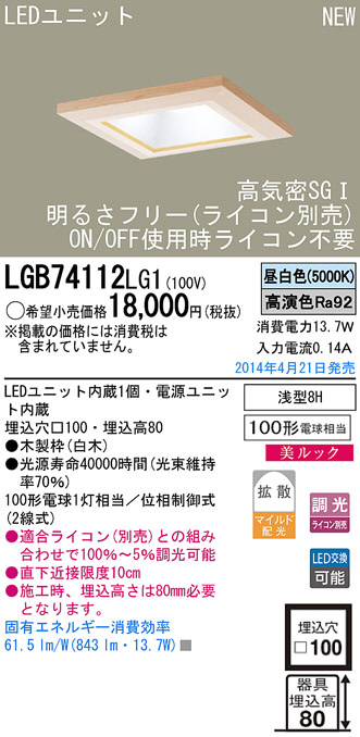 Panasonic LED¥À¥¦¥ó¥é¥¤¥È LGB74112LG1