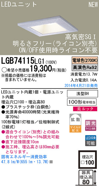 Panasonic LED¥À¥¦¥ó¥é¥¤¥È LGB74115LG1