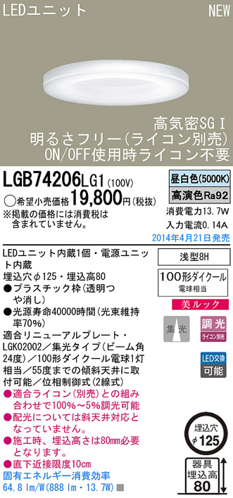 Panasonic LED¥À¥¦¥ó¥é¥¤¥È LGB74206LG1