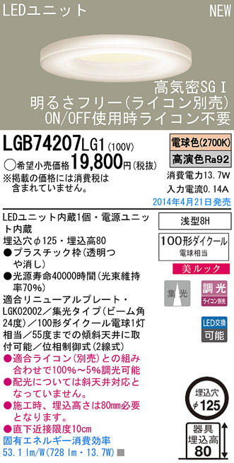 Panasonic LED¥À¥¦¥ó¥é¥¤¥È LGB74207LG1