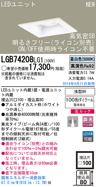 Panasonic LED¥À¥¦¥ó¥é¥¤¥È LGB74208LG1