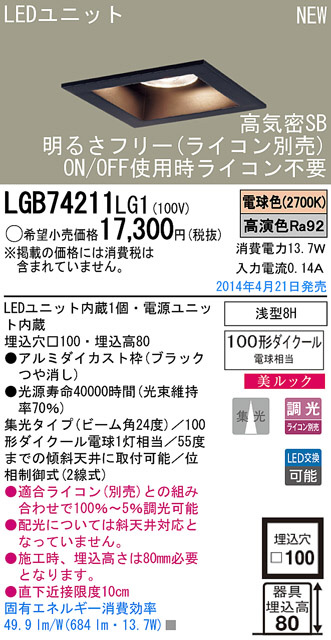 Panasonic LED¥À¥¦¥ó¥é¥¤¥È LGB74211LG1