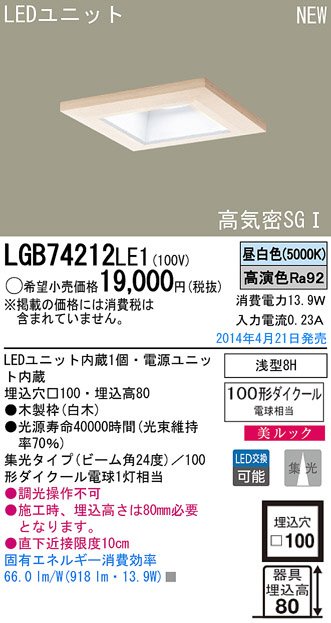 Panasonic LED¥À¥¦¥ó¥é¥¤¥È LGB74212LE1