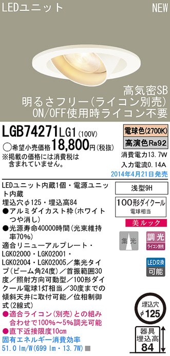 Panasonic LED¥À¥¦¥ó¥é¥¤¥È LGB74271LG1