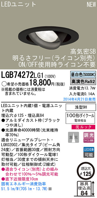 Panasonic LED¥À¥¦¥ó¥é¥¤¥È LGB74272LG1