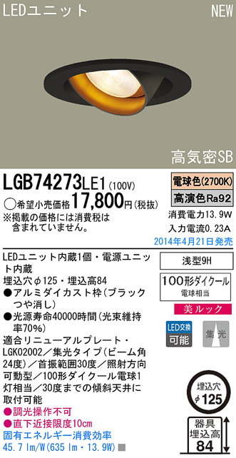 Panasonic LED¥À¥¦¥ó¥é¥¤¥È LGB74273LE1