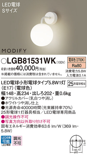 Panasonic LED ¥Ö¥é¥±¥Ã¥È LGB81531WK