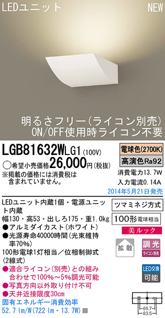 Panasonic LED¥Ö¥é¥±¥Ã¥È LGB81632WLG1