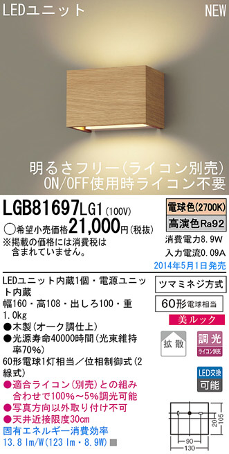 Panasonic LED¥Ö¥é¥±¥Ã¥È LGB81697LG1