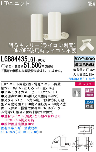 Panasonic LED¥¹¥Ý¥Ã¥È¥é¥¤¥È LGB84435LG1