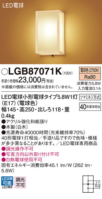 Panasonic LED ¥Ö¥é¥±¥Ã¥È LGB87071K