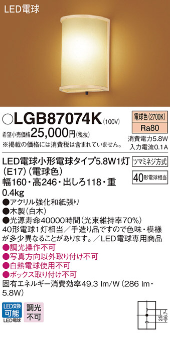 Panasonic LED ¥Ö¥é¥±¥Ã¥È LGB87074K