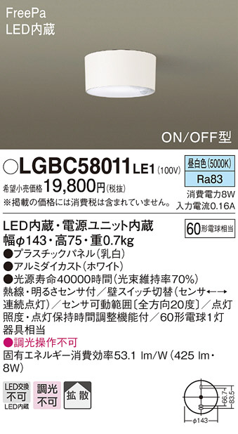 Panasonic ¥·¡¼¥ê¥ó¥°¥é¥¤¥È LGBC58011LE1