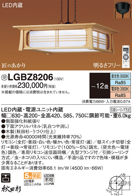 Panasonic ¥Ú¥ó¥À¥ó¥È¥é¥¤¥È LGBZ8206