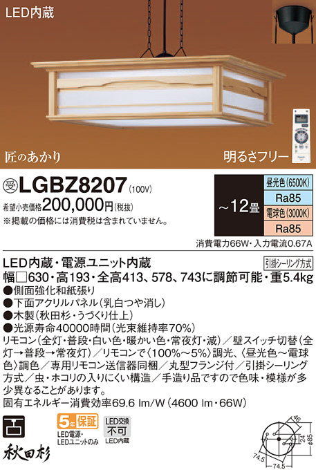 Panasonic ¥Ú¥ó¥À¥ó¥È¥é¥¤¥È LGBZ8207