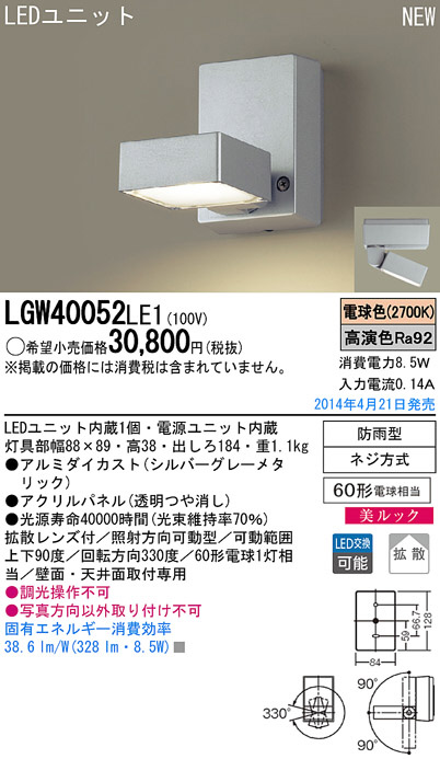 Panasonic LED¥¨¥¯¥¹¥Æ¥ê¥¢¡¦¥¢¥¦¥È¥É¥¢ LGW40052LE1