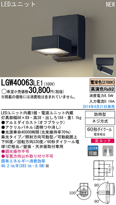 Panasonic LED¥¨¥¯¥¹¥Æ¥ê¥¢¡¦¥¢¥¦¥È¥É¥¢ LGW40063LE1