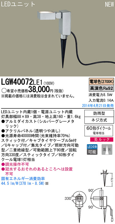 Panasonic LED¥¨¥¯¥¹¥Æ¥ê¥¢¡¦¥¢¥¦¥È¥É¥¢ LGW40072LE1