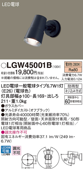 Panasonic LED ¥¨¥¯¥¹¥Æ¥ê¥¢¡¦¥¢¥¦¥È¥É¥¢ LGW45001B
