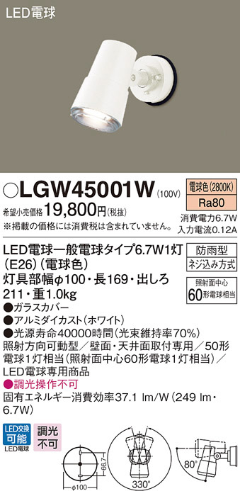 Panasonic LED ¥¨¥¯¥¹¥Æ¥ê¥¢¡¦¥¢¥¦¥È¥É¥¢ LGW45001W