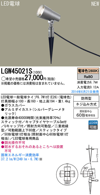 Panasonic LED¥¨¥¯¥¹¥Æ¥ê¥¢¡¦¥¢¥¦¥È¥É¥¢ LGW45021S