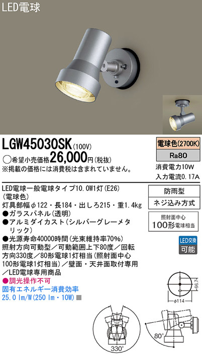Panasonic LED¥¨¥¯¥¹¥Æ¥ê¥¢¡¦¥¢¥¦¥È¥É¥¢ LGW45030SK