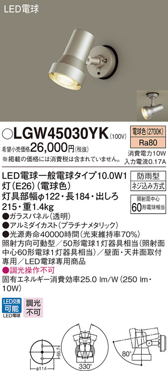 Panasonic LED ¥¨¥¯¥¹¥Æ¥ê¥¢¡¦¥¢¥¦¥È¥É¥¢ LGW45030YK