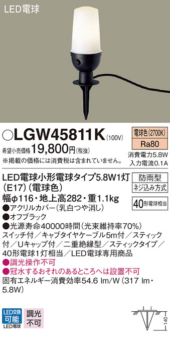 Panasonic LED ¥¨¥¯¥¹¥Æ¥ê¥¢¡¦¥¢¥¦¥È¥É¥¢ LGW45811K
