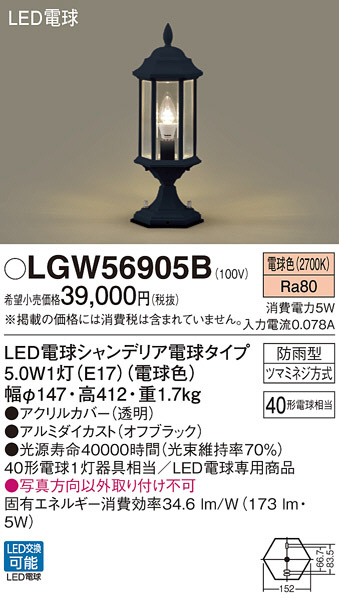 Panasonic ¥¨¥¯¥¹¥Æ¥ê¥¢¡¦¥¢¥¦¥È¥É¥¢ LGW56905B