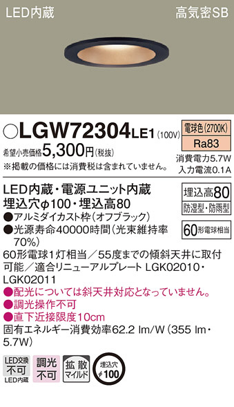 Panasonic LED ¥À¥¦¥ó¥é¥¤¥È LGW72304LE1