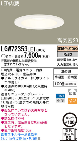 Panasonic LED ¥À¥¦¥ó¥é¥¤¥È LGW72353LE1