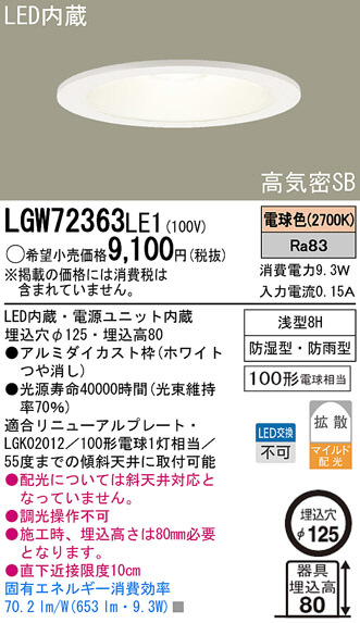 Panasonic LED ¥À¥¦¥ó¥é¥¤¥È LGW72363LE1